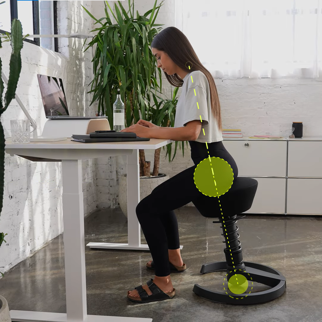 Balancestolens konvekse sæde forhindrer vaskulær påvirkning. At sidde i bevægelse stimulerer aktiv blodcirkulation hele vejen tilbage til dit hjerte og modvirker eventuelle venøse forstyrrelser.