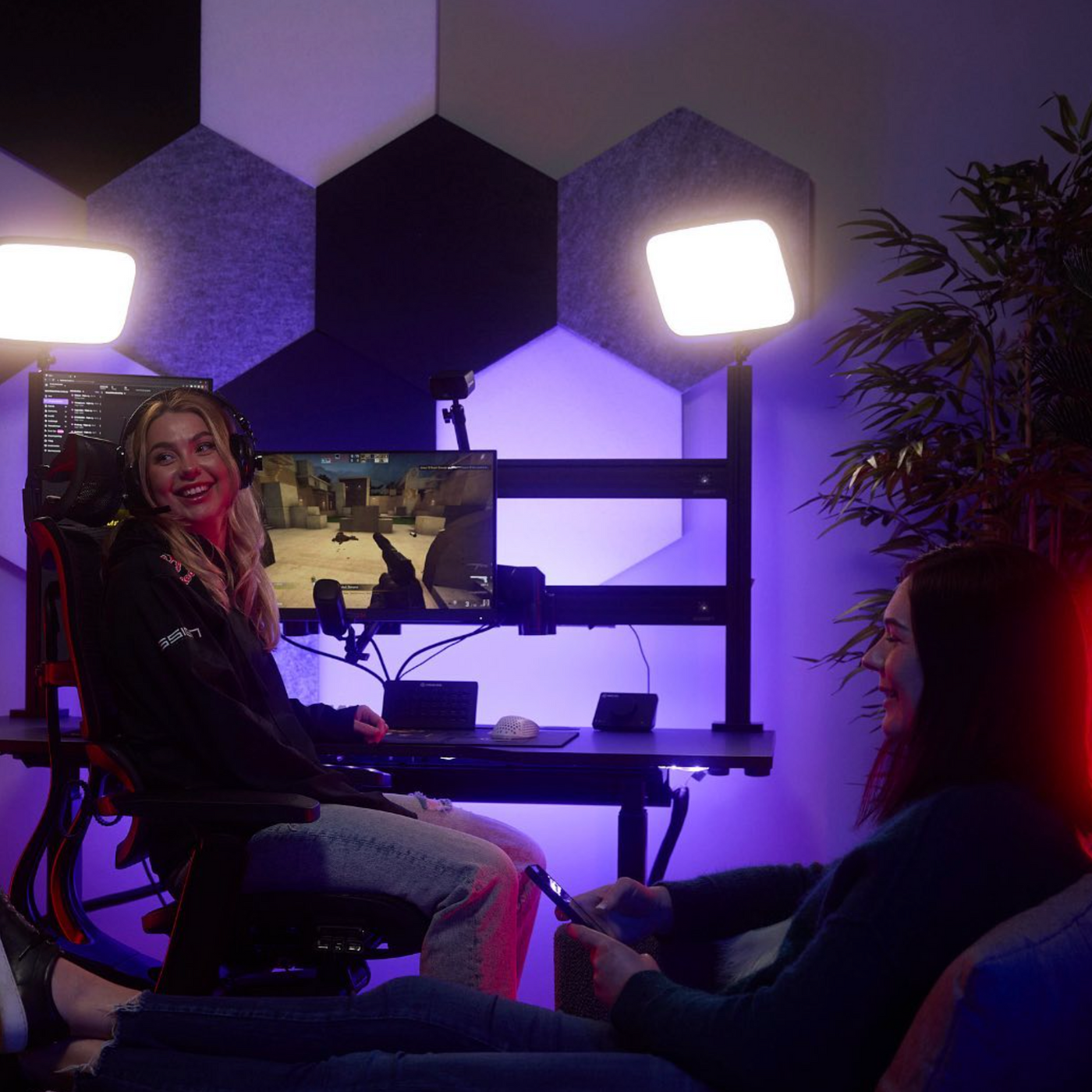 Vores gaming bord er kompatible med Gsigns unikke G:Bars, som giver dig mulighed for nemt at påsætte ekstra udstyr såsom lydabsorbenter, LED-lys og andet streamingudstyr.