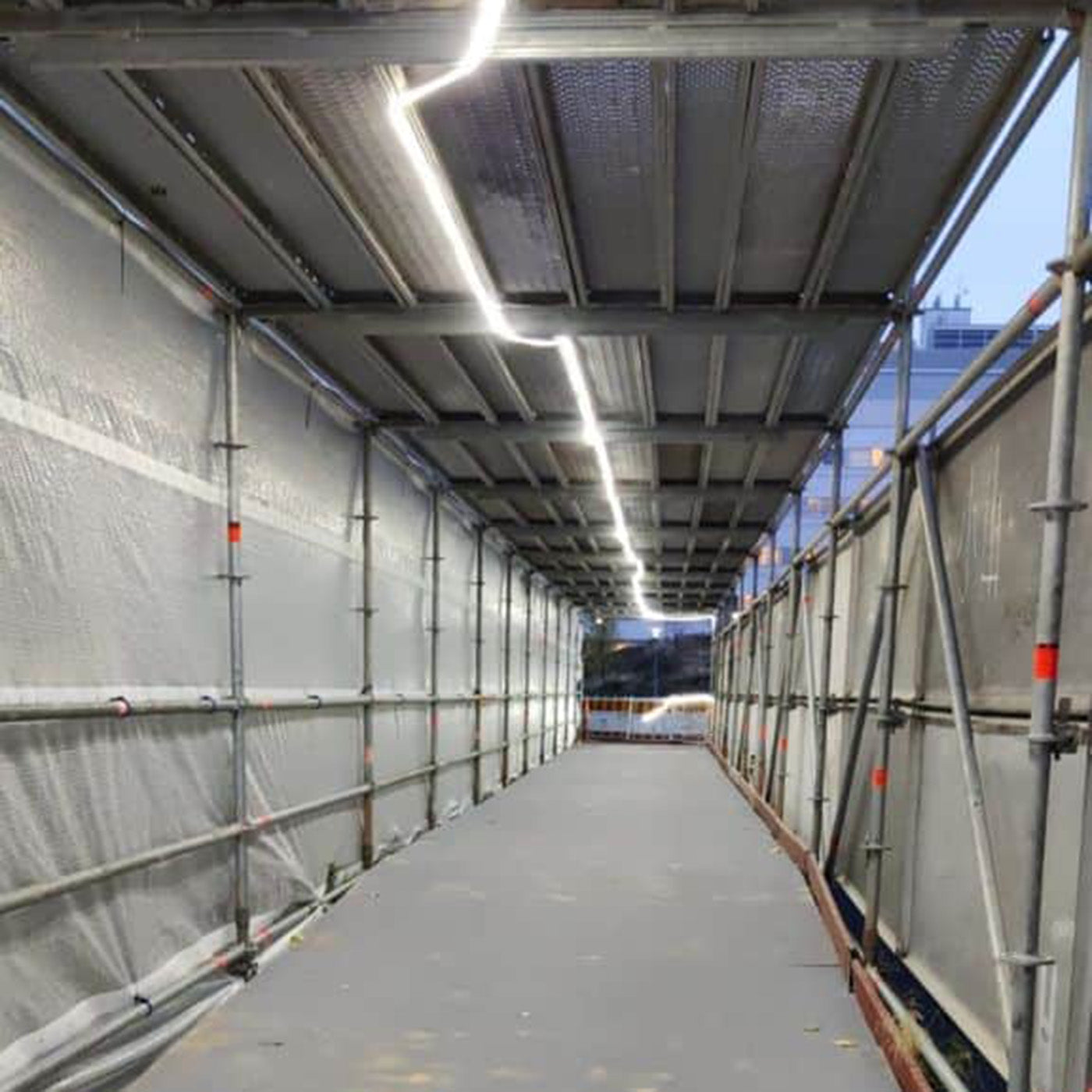 Udover bygningsbelysning og kabler har vi vores proprietære selvklæbende gulvbelægning, der sparer brugeren for enorme mængder tid ved belægning af gulve og trapper. Ikke nok med det, så tager det ikke mange sekunder at være glad for den lave vægt og hvor let den er at dække med i forhold til mælkekarton.