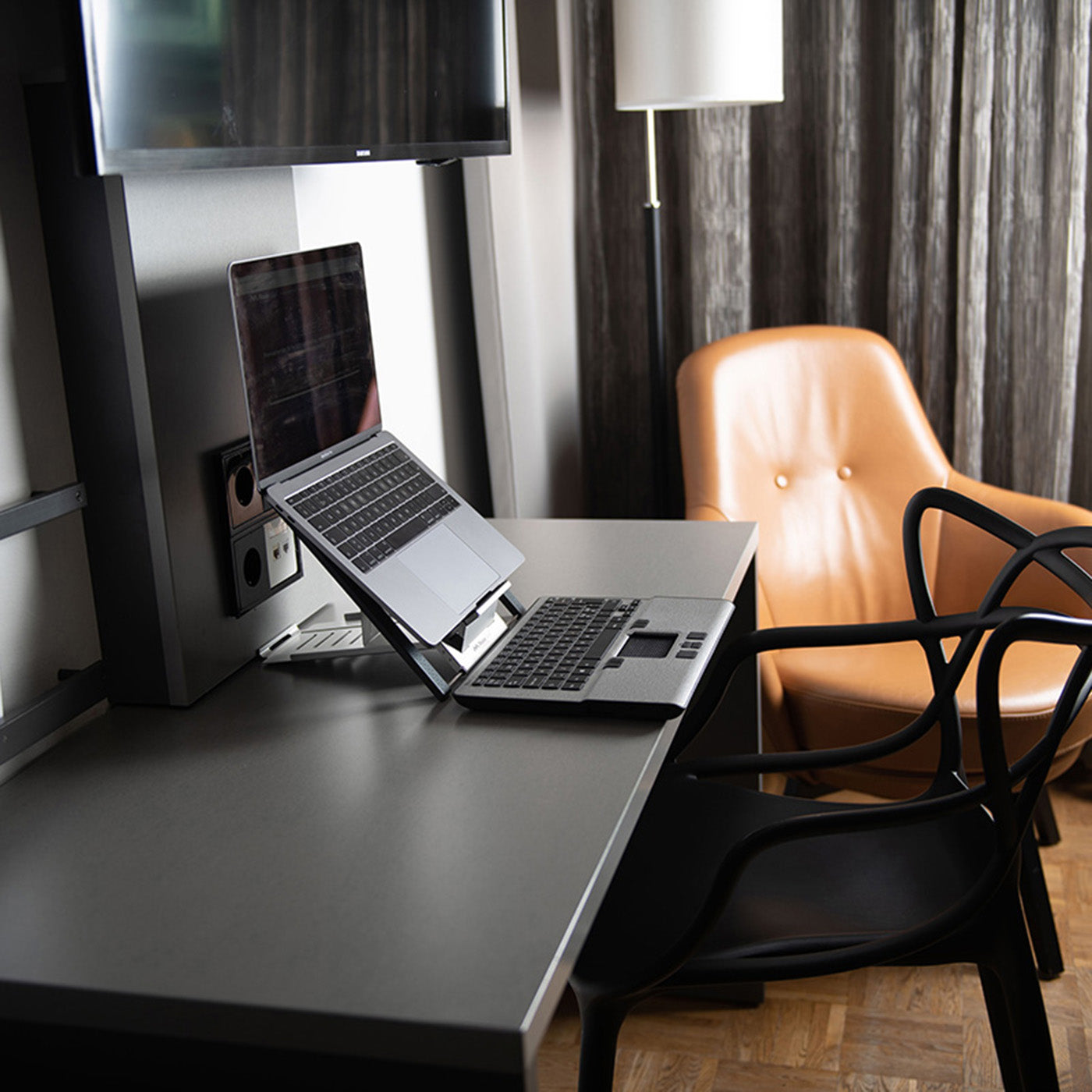Takket være dette kan du både forebygge og mange gange afhjælpe de belastningsskader, der kan opstå i forbindelse med arbejde uden for din egen skulder – hvilket du gør med en almindelig computermus. Så du behøver ikke længere række ud efter musen på skrivebordet. Det brede og bløde håndledsstøtte giver også støtte og aflastning til nakke, skuldre, arm og håndled.