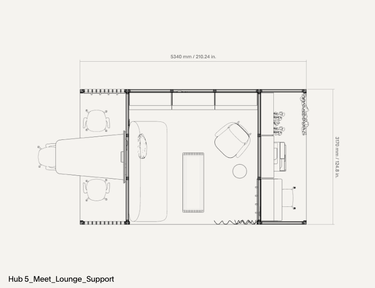 Rum-i-værelse, OmniRoom Hub 5: Mød + Lounge + Support