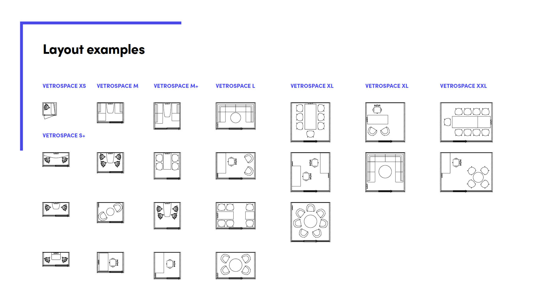 Tilpas din mødestand til dine behov med det layout, der passer til dig. Se eksempler nedenfor.